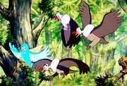 Noahs Insel schwimmt mittlerweile an der Küste Südamerikas entlang. Und wieder gibt es Neuzuwachs: ein äußerst seltenes Ara-Weibchen. Der schräge Vogel stiftet nichts als Unruhe: Zuerst hackt er um sich, dann verliebt er sich in Geier Kim. Auch Kim entflammt für das Ara-Weibchen. Während die frisch Verliebten turteln, taucht plötzlich ein Ara-Männchen auf.