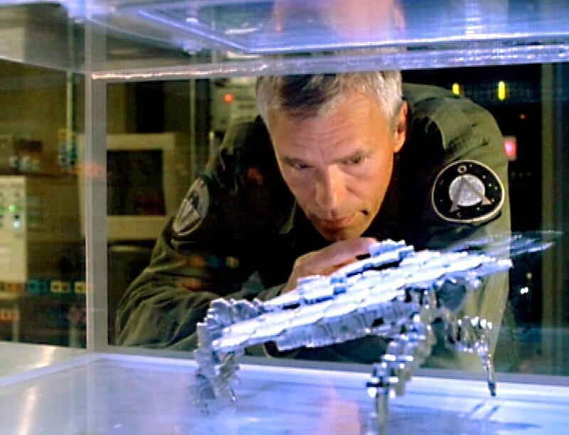 • Der Replikator wurde in einen Spezialglasbox gesperrt. Jack (Richard Dean Anderson) lässt das gefährliche Untier nicht aus den Augen.
