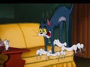Als sich Jerry am Kühlschrank zu schaffen macht, wird er von Tom überrascht. Die Katze spielt ihm zuerst mit Blaubeerkuchen übel mit und jagt ihn dann mit einer Mausefalle. Jerry rennt gegen die Wand neben seinem Mauseloch und fällt ihn Ohnmacht. Über ihm kippt eine Flasche mit weißer Farbe um. Währenddessen hört Tom im Radio eine Warnung: eine gefährliche weiße Labormaus wird gesucht ...