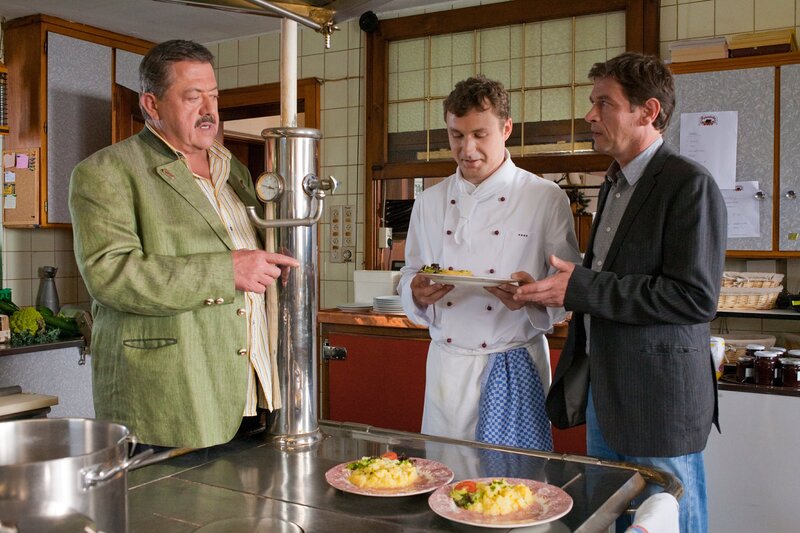 Für die Konzertvorbereitung eines Starpianisten spannt Bürgermeister Karl Schretzmayer (Jürgen Tonkel, l.) Polizeichef Achtziger (Alexander Duda, r.) und Marie (Karin Thaler, m.) ein, bis am Ende alles anders kommt als gedacht.