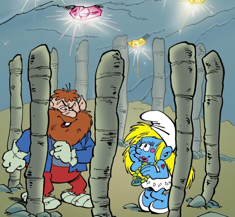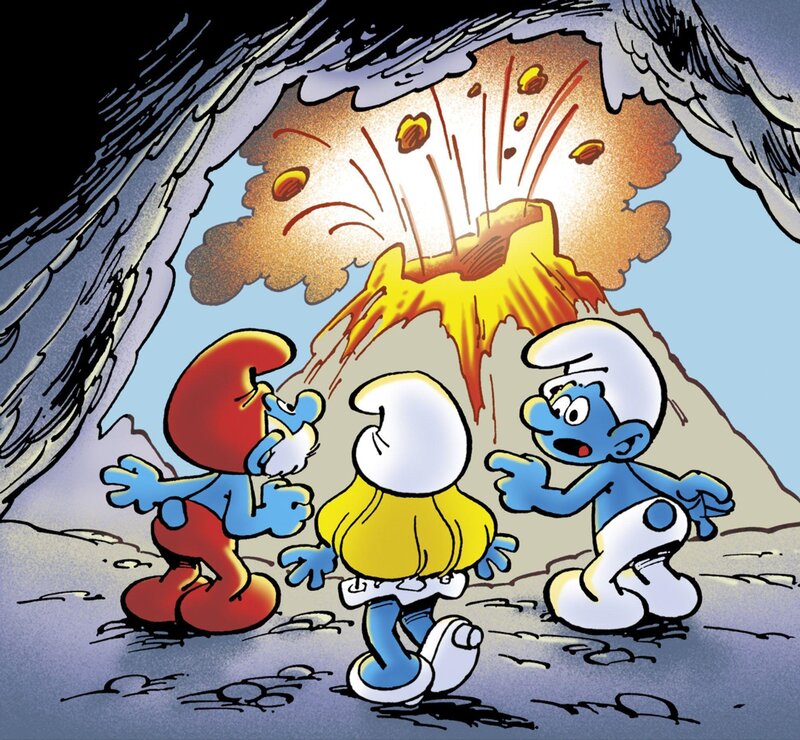Traumi möchte zu den Sternen fliegen. Aber seine selbstgebaute Rakete hebt nicht ab. Papa Schlumpf verabreicht ihm ein Schlafmittel. Dann lässt er den Schlummernden und sein Raumschiff in einen erloschenen Vulkankrater bringen. Als Traumi erwacht, glaubt er auf einem fremden Planeten zu sein.