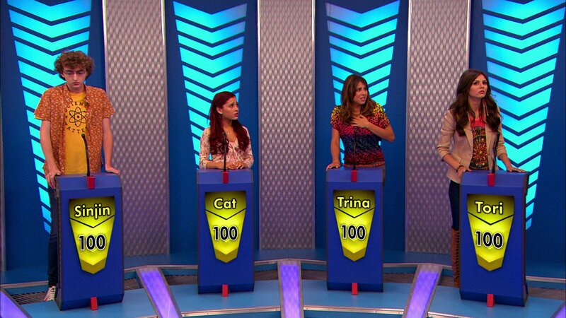 • L-R: Sinjin Van Cleef (Michael Eric Reid), Cat Valentine (Ariana Grande), Trina Vega (Daniella Monet), Tori Vega (Victoria Justice)