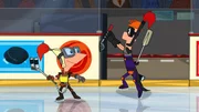 "Disneys Phineas und Ferb", "Eishockeyfieber / Die Neujahrsweltraumkugel." Eishockeyfieber:Phineas und Ferb kreieren 'Hockey Z-9' - ein Spiel, dass das klassische Eishockey weiterentwickelt. Um ihre Erfindung bekannt zu machen, führen sie sie während der Halbzeitpause eines örtlichen Hockeyspiels vor. Derweil versucht Candace Jeremy weiszumachen, dass sie sich im Eishockey bestens auskennt.
