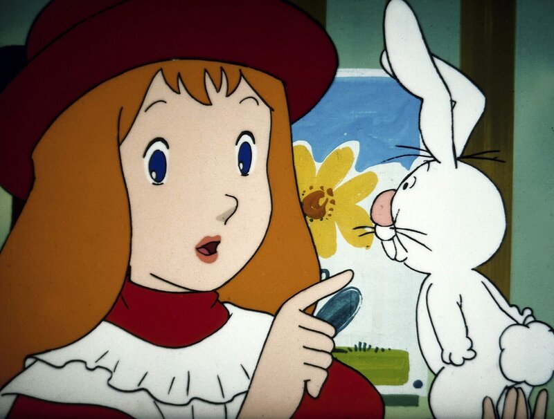 Der zerstreute königliche Zeitansager verwechselt Alice mit seiner Haushälterin und befiehlt ihr, seine Glacéhandschuhe und einen Fächer zu holen. Alice versucht die Verwechslung aufzuklären, aber das große weiße Kaninchen hört gar nicht hin. In seinem Haus probiert Alice etwas Tee - und beginnt sofort zu wachsen. Die Bewohner des Wunderlands haben aber kein Mitleid mit ihr. Sie machen sich eher Sorgen, wie man Alice befreien kann, ohne dass das Haus Schaden nimmt.
