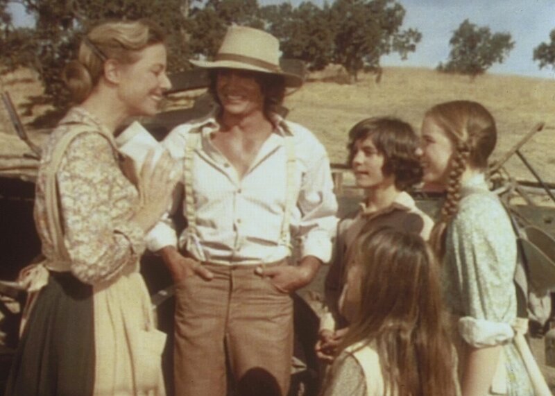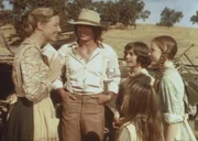 • Caroline (Karen Grassle, l.) ist überglücklich. Denn in dem Telegramm kündigen ihre Eltern einen Besuch in Walnut Grove an. Auch Albert (Matthew Laborteaux, 3.v.l.) und Charles (Michael Landon 2.v.l.) freuen sich die Großeltern kennen zu lernen.