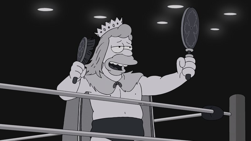 "Die Simpsons", "Der glamuröse Godfrey." Homer kauft bei einer Auktion den Inhalt eines alten Lagerraumes. Dabei entdeckt die Familie, dass die Kisten die mit Perücken und ähnlichem gefüllt sind, Abe Simpson gehören. Anfangs denken alle, dass Grandpa jahrelang seine Homosexualität verheimlicht hat. Doch in Wirklichkeit gibt es eine ganz andere Erklärung: Er war in jungen Jahren einer der berühmtesten Wrestler der Welt.