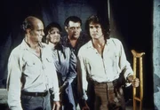 • Charles Ingalls (Michael Landon, r.) stellt die angeblich "Geheilten" (Hank Kendrick, l., Carol Norton, 2.v.l., Fred Ashley, 2.v.r.) zur Rede ...