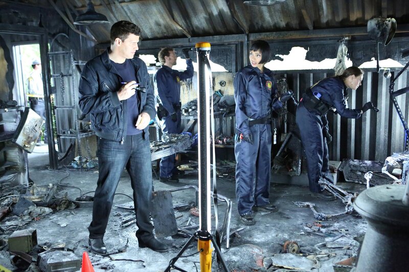 In einer abgelegenen Hütte erwacht Deanna Barbieri, nachdem offenbar narkotisiert wurde. Als sie die Tür zum Nebenzimmer öffnet, wird sie von einer riesigen Stichflamme erfasst und verbrennt samt Hütte. Die Ermittler des Jeffersonian können ihre Identität schnell herausfinden, da es sich bei Deanna um eine ehemalige Militärangehörige handelt, deren Krankenakte und Zahndaten gespeichert sind. Deanna gehörte zu einer kleinen Gruppe Weltuntergangshysterikern, die sich in einem abgelegenen Waldstück in einem unterirdischen Bunker auf das Ende der Welt vorbereiten wollen. Der Leiter dieser Gruppe, der sich selbst Dr. Apokalypse nennt, hatte ein Verhältnis mit Deanna. Booth und Hodgins finden heraus, dass die Explosion mit Hilfe einer Sprengfalle gezündet wurde. Einige Mitglieder der Weltuntergangsgruppe haben die Fähigkeiten, so eine Sprengfalle zu bauen, auch Dr. Apokalypses Frau Dolores wäre in der Lage, so eine Falle herzustellen. Sweets hat wieder einmal den Entschluss gefasst, bei Booth und Brennan auszuziehen. Da es nicht das erste Mal ist, dass er sich eine Wohnung ansieht, sind die beiden noch recht entspannt, denn sie haben sich an ihren Mitbewohner gewöhnt und schätzen seine Nähe. Doch diesmal scheint Sweets ernsthaft ausziehen zu wollen machen. Booth und Brennan müssen sich eingestehen, dass sie Sweets als Mitbewohner vermissen werden.