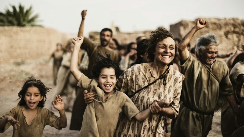 ExodusScene 2/51 - Ext Istraelite settlement in Egypt; The Israelite are celebrating and packing up their belongings.