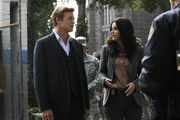 Die US-Army-Sanitäterin Lucy Greene wird tot mit durchschnittener Kehle in einem Hinterhof aufgefunden. Patrick (Simon Baker, M.) und Teresa (Robin Tunney, l.) beginnen mit den Ermittlungen und stoßen dabei auf Pete Coen (Jesse Luken, r.). Doch hat er wirklich etwas damit zu tun?