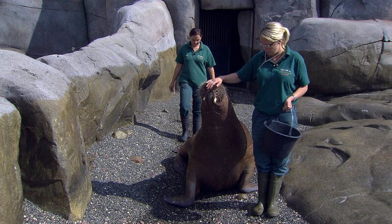 • ARD/NDR LEOPARD, SEEBÄR & CO., FOLGE 147. Tierpflegerin Karolin Kietz bringt Walross Neseyka zur Zahnkontrolle.