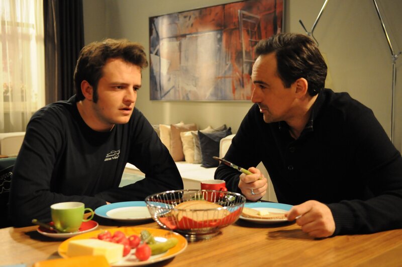 • Mike will für vier Wochen mit Trixi nach Australien, in der Zeit soll sich Flori um die Werkstatt kümmern. Von links: Florian Brunner (Tommy Schwimmer) und Mike Preissinger (Harry Blank).