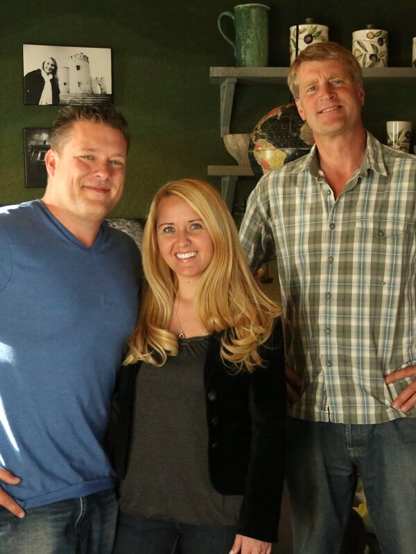 The clients and Pete together in the green room inside the treehouse.