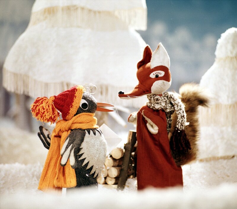 Fuchs & Elster: Schneeballschlacht: Frau Elster hat sich im Termin der Schneeballschlacht geirrt. Nun sind Herr Fuchs und Frau Elster einen Tag zu früh an Ort und Stelle. Sie beschließen Zielwerfen zu üben. Dabei knetet Herr Fuchs die Bälle besonders lang. Frau Elster macht ihn auf die Gefahr zu harter Schneebälle aufmerksam.