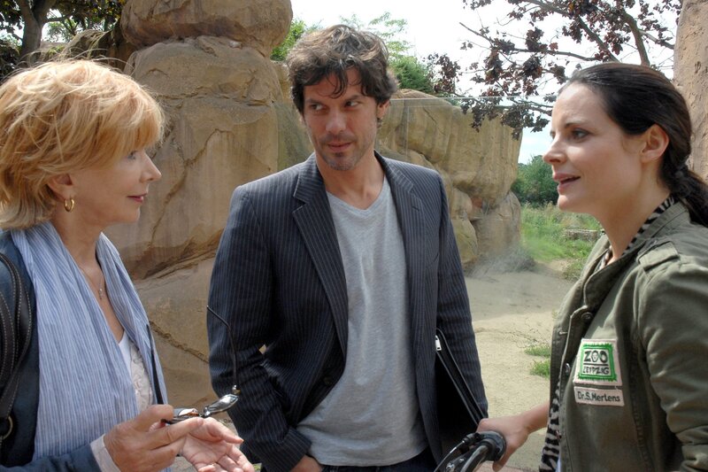 Tom Berkhoff (Gregory B. Waldis, M.) hat Tierärztin Dr. Mertens (Elisabeth Lanz, r.) gerade einen Geier geschenkt. Charlotte (Ursela Monn, l.) bleibt das heimliche Einvernehmen zwischen Susanne und Tom nicht verborgen.