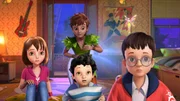 Die drei Geschwister sehen sich einen Film an, in dem der kleine Bösewicht Synapse von Captain Muscles gejagt wird. Michael hat Angst vor Synapse, obwohl er den Film schon oft gesehen hat und den Ausgang kennt. Als Peter kommt, um sie abzuholen, ist er ganz fasziniert von dem Film und will den Besuch in Nimmerland verschieben. Aber die Geschwister wollen unbedingt nach Nimmerland und so wird kurzerhand der Beamer mitgenommen, damit sich auch die Verlorenen Kinder den Film anschauen können. Bei der Vorführung kommt es zu einem Kurzschluss und Synapse springt aus dem Film. Er flieht sofort aus dem Baum der Kinder und fliegt mit seinem Flugapparat über die Insel. Als der Apparat streikt, stürzt er auf die Jolly Roger, wo er es fertig bringt, die Piraten auf seine Seite zu ziehen und Hook zu vertreiben. Peter bist mit den Geschwistern unterwegs, um Synapse wieder einzufangen. Da stößt Hook zu ihnen und sie verbünden sich, um Synapse gefangen zu nehmen. Das klappt erst nach einigen Schwierigkeiten und mit Hilfe der alarmierten Verlorenen Kinder. Schließlich wird Synapse wieder in seinen Film geschickt und der Spuk hat ein Ende.