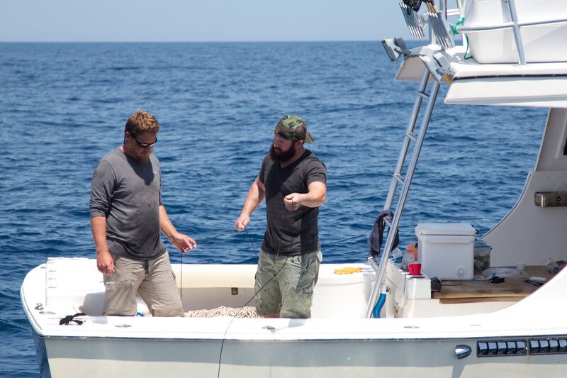 • L-R: Eric Young and Tom finish their research with the Goliath Grouper.