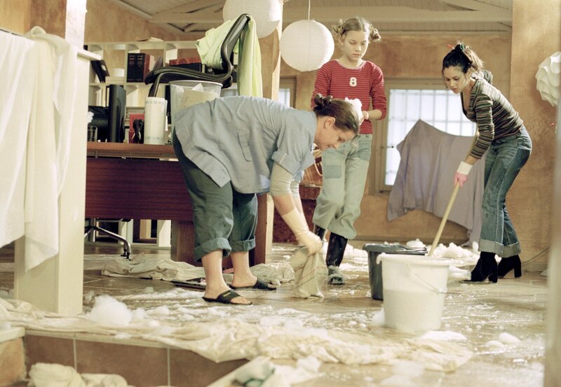 Überschwemmung in der Kanzlei: Gudrun (Katrin Pollitt, l.), Charlotte (Alina Liss, M.) und Yasmin (Burcu Dal, r.) im Großeinsatz.