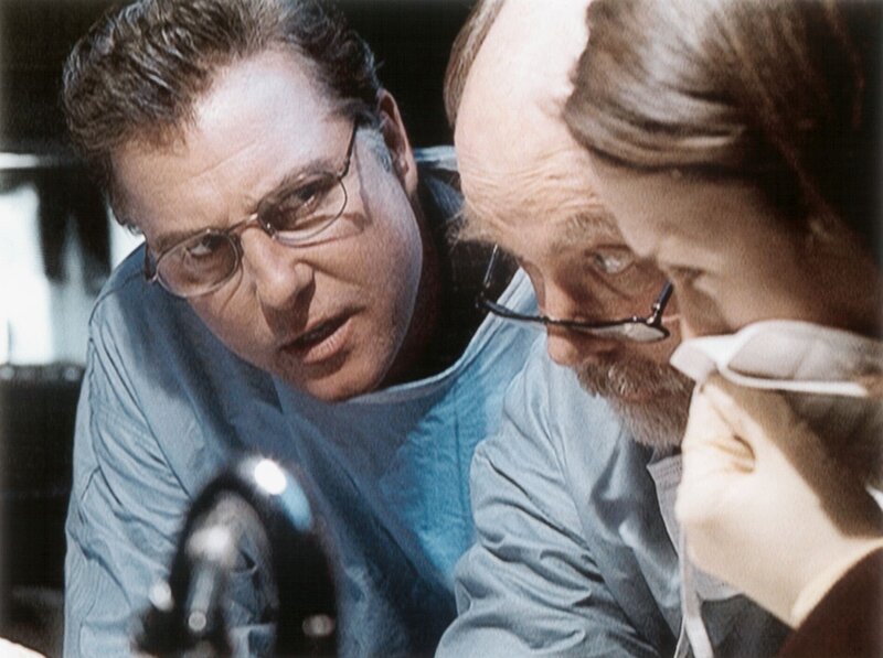 Gil (William Petersen, l.), Doc Robbins (Robert David Hall) und Sara (Jorja Fox) untersuchen ein weiteres Mal die Leiche. Haben sie etwas übersehen?