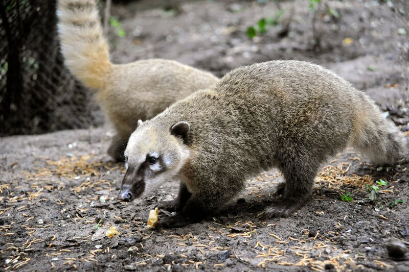 Neugierig erkunden die kleinen Nasenbären im Zoo ihr neues Umfeld, sie haben die letzten vier Wochen zusammen mit ihren Müttern im Innengehege verbracht.