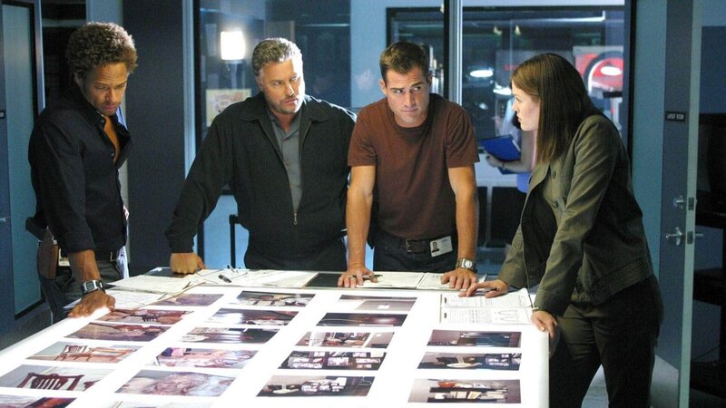 Ein extrem brutaler und skrupelloser Einbrecher versetzt die CSI-Experten (v.li.) Warrick (Gary Dourdan), Gil Grissom (William Petersen), Nick (George Eads) und Sara (Jorja Fox) in höchste Alarmbereitschaft.