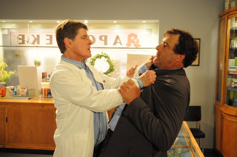 Bamberger und Werner geraten in eine handfeste Auseiandersetzung. Von links: Roland Bamberger (Horst Kummeth) und Werner Westenrieder (Joachim Raaf).