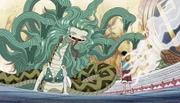 Ruffy muss alle Kräfte aufbieten, um Sonia und Mari in der Arena zu besiegen. Im Zuge der Auseinandersetzung fängt Sandersonias Kleid plötzlich Feuer, doch Ruffy reagiert sofort. Er weiß, dass die Gorgonen-Schwestern lieber sterben würden, als jemandem ihren Rücken zu zeigen. Sein Einsatz hat unerwartete Folgen.