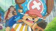 Die Strohhutbande gerät ins Visier der Marine. Derweil ist Chopper gemeinsam mit Lysop und Nami auf dem Weg zum Schiff, wo sie auf Robin und Franky treffen. Außerdem erhält die Marine einen Hinweis auf den Verbleib der neuen Crewmitglieder der falschen Strohhüte ...