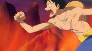 Ruffy will dem Mann helfen, der im Körper des riesigen Drachens feststeckt. Außerdem macht sich Ruffy auch Gedanken, wie er den Mann retten kann, der mit einem Notruf um Hilfe gebeten hat.