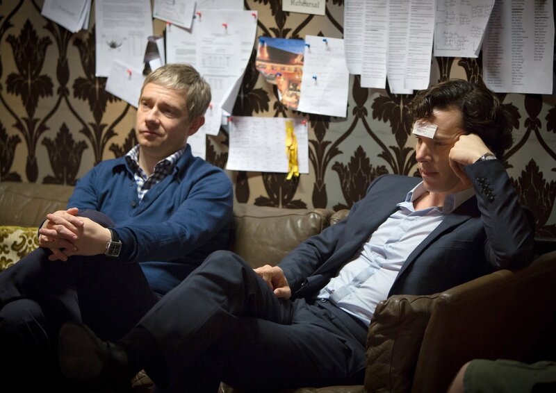 Kombinieren, deduzieren und Spuren lesen: Das sind Sherlock Holmes' (Benedict Cumberbatch) Stärken. Die Rolle des Trauzeugen, der auf der Hochzeitsfeier seines Freundes John Watson (Martin Freeman) eine gefühlvolle Rede halten soll, stellt ihn vor Probleme. In seiner Not besinnt er sich auf ungelöste Fälle: Ein Leibgardist der Königin wähnte sich von einem mysteriösen Stalker verfolgt und bat Sherlock um Hilfe. Trotz seiner Genialität konnte der Detektiv weder den Mordanschlag auf den Wachmann verhindern noch Tatwaffe, Tathergang und Täter ausfindig machen. Ebenso rätselhaft ist der Fall des "Eintagsfliegen-Mannes". Dieser verabredete sich in den Wohnungen kürzlich Verstorbener mit Frauen zu einem romantischen Rendezvous und verschwand danach spurlos - die Auserwählten glaubten hinterher, mit einem Geist zusammen gewesen zu sein. Gebannt lauschen die Hochzeitsgäste den Geschichten Sherlocks, dem während des Erzählens plötzlich bewusst wird, welche Indizien er übersah. In beiden Fällen war derselbe Unbekannte aktiv. Das Phantom wird wieder zuschlagen - hier und jetzt auf der Hochzeitsfeier. Sherlock bleibt nicht viel Zeit, um herauszufinden, wer das Opfer ist und auf welche Art es sterben soll. In "Sherlock - Im Zeichen der Drei" steht der berühmte Detektiv vor einer ungeahnten Herausforderung: Während ihn zwei unaufgeklärte Fälle auf die Spur eines weiteren Verbrechens führen, muss er seinen treuen Freund Watson in den Hafen der Ehe verabschieden. Die geschickt modernisierte Kriminalgeschichte nach Motiven von Sir Arthur Conan Doyle überzeugt durch ihren typisch britischen Humor. Neben Benedict Cumberbatch als obsessivem Schnelldenker spielt wieder "Hobbit"-Star Martin Freeman, dessen Lebenspartnerin Amanda Abbington auch seine Filmbraut Mary verkörpert. Zum Abschluss der Staffel trifft Sherlock am 9. Juni auf einen ebenbürtigen Gegner und einen alten Rivalen. Dann heißt es um 21.45 Uhr im Ersten "Sherlock - Sein letzter Schwur".