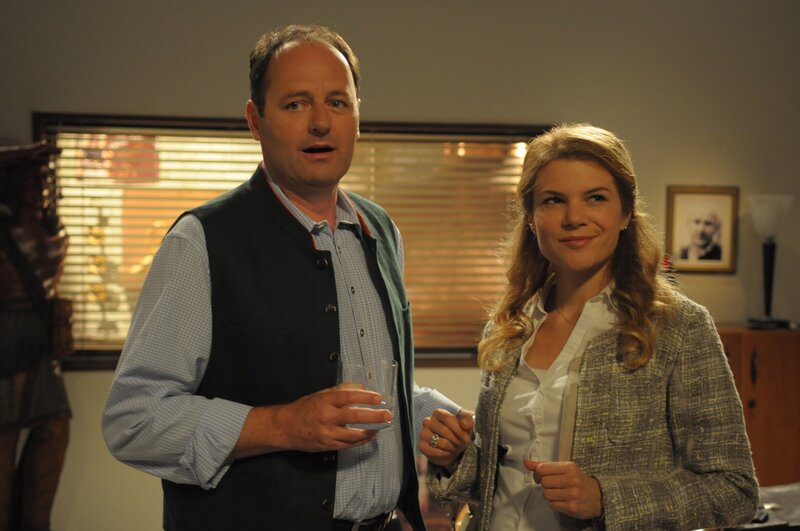 Uschi ist skeptisch, ob sie Hubert bei der Geburt dabei haben möchte. Von links: Hubert Kirchleitner (Bernhard Ulrich) und Uschi Guggenmoser (Silke Popp).