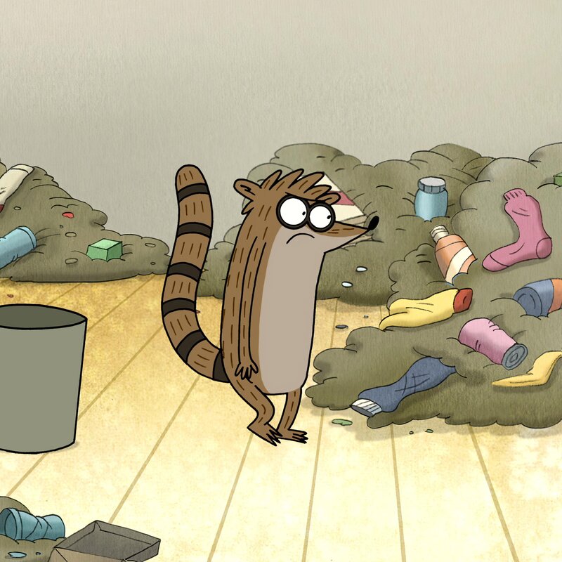 Mordecai und Rigby müssen ihr Zimmer aufräumen.