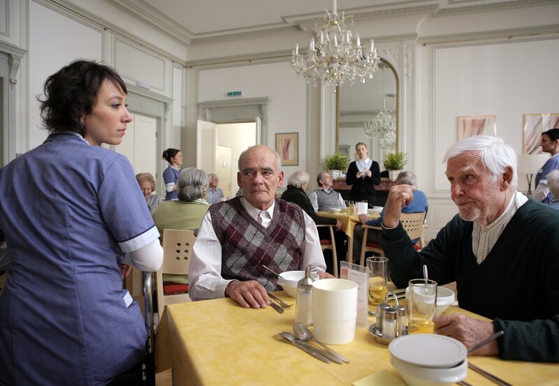 Und so kehrt man in die Seniorenresidenz zurück, wo inzwischen Roccos Flamme Marina die Heimleiterin ist. Die sanfte Marina hat die harte Tour ihrer Vorgängerin Frau Glück zwar eingestellt, aber nun schlägt das Pendel gewaltig in die andere Richtung aus. Die alten Menschen werden behandelt wie kleine Kinder. Man bastelt miteinander, man spielt "lustige" Gesellschaftsspiele, man hat für alles und jeden Verständnis. Man behandelt sie aber nicht wie verantwortungsvolle Erwachsene.