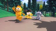 Garfield, Odie und Nermal sind allein im Wald. Irgendwann meldet sich der erste Hunger. Doch die drei wissen so gar nicht, wie sie in der freien Natur an etwas zu essen kommen sollen. Erst ein Bär bringt sie auf die Idee, dass sie es ja mal mit Honig versuchen könnten. Währenddessen ist Jon mit den Zwillingen und den drei Waschbären wieder zu Hause eingetroffen. Wegen eines schlimmen Ausschlags an den Augen fällt ihm zunächst nicht auf, dass er statt der drei Haus- drei Wildtiere mitgenommen hat. Es dauert nicht lange und die drei Waschbären machen sich über die Vorräte in der Küche her. Dabei werden sie von Squeak überrascht, der von den Gaunern aber kurzerhand in eine Keksdose gesperrt wird.