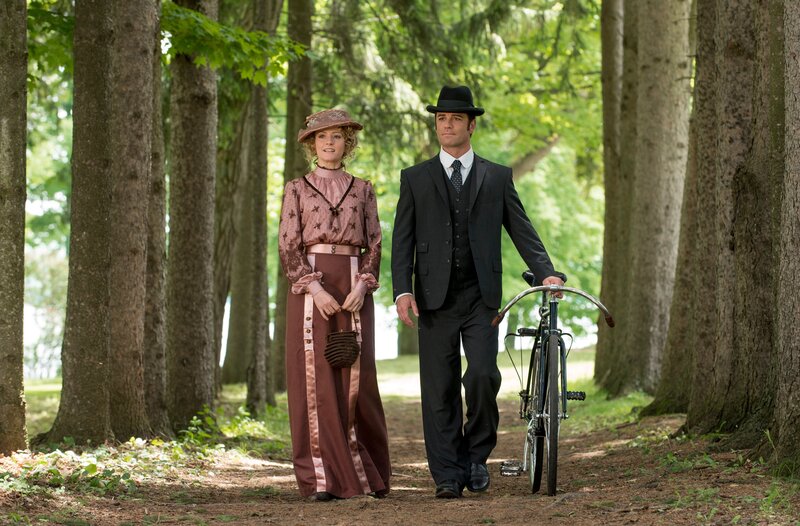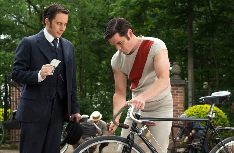 • Crabtree (Jonny Harris, l) hat auf Murdoch (Yannick Bisson) im Radrennen gewettet