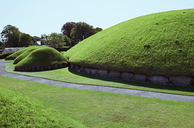 Newgrange ein Hügelgrab aus der Jungsteinzeit, 5.000 Jahre alt. Ein Bauwerk - ein Kunstwerk, in des Wortes wahrstem Sinne. Älter als die ägyptischen Pyramiden. Älter als das antike Babylon, die Mutter aller Städte. In der Umgebung finden sich noch zwei Grabstätten, die von der Unesco zum Weltkulturerbe ernannt wurden. Knowth, das Hauptgrab ist umgeben von Satellitengräbern und Dowth. Die dritte Anlage zeigt sich so wie die Grabhügel im Mittelalter wahrgenommen wurden, als scheinbar natürlich gewachsener Teil der Landschaft. Die Gräber gehören zu den wichtigsten archäologischen Landmarken dieser Erde. Alle drei liegen nördlich von Dublin in einer Biegung des Flusses Boyne. "Bend of Boyne" wird das Ensemble denn auch genannt. Seit der Steinzeit leben hier Menschen. Der Boyne war die wichtigste Straße dieser Gegend, Transportweg genauso wie Nahrungs- und Trinkwasserspeicher. Damals wurden die Menschen sesshaft. Die arbeitsteilige Gesellschaft entstand. Viele der Grabanlagen sind mit einer Vielzahl von Motiven verziert: Über sie gibt es ebenso wenig gesicherte Wahrheiten wie über die Gräber selbst. Newgrange wurde zufällig entdeckt. Erst in den 1960er Jahren erkannte man seine Bedeutung und die astronomische Ausrichtung. Das Grab wurde nach dem Bild restauriert, das sich die Archäologen von der Steinzeit machten. Ob es vor 5.000 Jahren wirklich so ausgesehen hat, bleibt ungewiss. Auch ob die funkelnden Quarzsteine damals wirklich die Fassade zierten. Rund um die Wintersonnenwende am 21. Dezember dringt für wenige Minuten Licht in das ewige Dunkel des Grabes von Newgrange, das als einziges für Besucher zugänglich ist. Wer wurde in diesen Gräbern bestattet? Wie lange wurden die Gräber benutzt? Wie dachten unsere Vorfahren über den Tod? Glaubten sie an ein Leben im Jenseits? Sicher ist, Brú na Bóinne, der Palast des Boyne, wie die Iren dieses Welterbe nennen, war schon immer ein wichtiger Teil der irischen Mythologie. Sitz der Elfen und Heimstatt der Götter.