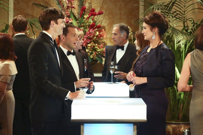 Als Alan (Jon Cryer, M) mit Walden (Ashton Kutcher, l.) auf eine Wohltätigkeitsveranstaltung geht, kann er sein Glück kaum fassen - denn dort trifft er auf Lynda Carter (Lynda Carter, r.), den Schwarm seiner Jugend ...