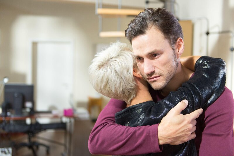 • Malte (Stefan Bockelmann) lässt der Trauer um seine Mutter in Utes (Isabell Hertel) Armen freien Lauf.