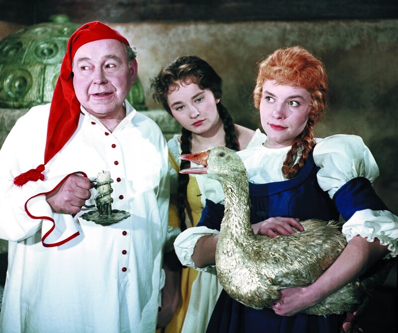 Niemand im Dorf schätzt den Dummling, den kleinen Bruder der beiden verschlagenen und eigennützigen Tischlerbrüder. Denn die Dörfler verwechseln ein gutes Herz mit Dummheit. So erkennt allein der Dummling, dass Prinzessin Luise nicht aus Arroganz ohne zu lächeln in der Kutsche durch das Dorf fährt, sondern weil sie traurig ist. Der Dummling ist auch der einzige, der einem geheimnisvollen Bettler etwas zu Essen gibt. Dafür wird er von diesem großzügig mit einer goldenen Gans belohnt. Die Gans will der Dummling nun der traurigen Prinzessin schenken. Doch er hat nicht mit der Habgier der Dörfler gerechnet. Ein paar goldene Federn wenigstens will jeder haben, doch alle, die nach der Gans greifen, bleiben kleben. So zieht der Dummling bald eine kuriose Menschenschlange hinter sich her auf seinem Weg ins Schloss. Dort ist das Lachen seit dem Tod der Königin verstummt. Der König ist in Melancholie versunken. Die strenge Tante Edeltraut lässt Prinzessin Luise von einem Lächelmeister unterrichten, denn Luise soll mit Prinz Amandus verlobt werden, und dafür muss sie lächeln können. Als das misslingt, bleibt nur noch ein Ausweg: Der König verspricht Luises Hand dem ersten, der sie zum Lachen bringt. Die abenteuerlich-komödiantische Verfilmung des Märchens "Die goldene Gans" wartet mit prominenten Darstellern auf, darunter Jeremy Mockridge, Jella Haase, Ingo Naujoks, Ulrike Krumbiegel und viele andere. Auch die "Darstellerin" der Titelfigur ist filmerfahren: Die aus Eilenburg stammende Filmgans Agata hat bereits bei der "Vermessung der Welt" mitgewirkt und wird ab 25. Dezember 2013 in "Der Medicus" auf der Leinwand zu sehen sein.