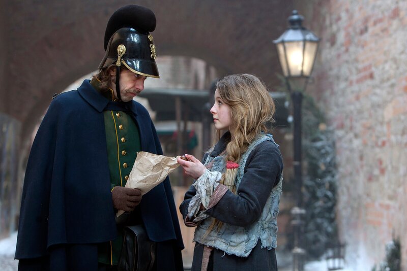 "Na dann los! Hopphopphopp!" So schickt die Leiterin des Waisenhauses, Frau Landfried, die Kinder in die Stadt. Am bitterkalten Morgen des Heiligen Abends sollen sie Schwefelhölzer verkaufen. Auch Inga und ihr kleiner Freund Emil müssen hinaus in die Kälte. Aber kaum einer der Passanten beachtet die Kinder. Emil, der kein einziges Schwefelhölzchen verkaufen konnte, hat Angst vor der bösartigen Frau Landfried: "Ich gehe nicht zurück ins Waisenhaus. Lieber erfriere ich." Inga will Emil helfen. Sie gibt ihm ihre mühsam eingenommenen Groschen und schickt ihn zurück. In der Hoffnung auf weitere Kundschaft bleibt sie allein in der Stadt. Wehmütig blickt sie in die festlich geschmückten weihnachtlichen Zimmer. Trost spendet ihr nur ein Amulett mit dem Bild ihrer verstorbenen Eltern. Es weist ihr den Weg in das mittlerweile verfallene Elternhaus, wo sie die Nacht verbringen will. Im Haus begegnet Inga einem Fremden, der auch Schutz vor dem eisigen Wind zu suchen scheint. Offensichtlich kennt er Inga, doch wirkt er etwas sonderbar. Er ist freundlich zu ihr und findet tröstende Worte in der kalten Nacht. Im Waisenhaus futtert inzwischen Frau Landfried allein mit ihrem dicken Hund die Weihnachtsgans. Und die Kinder gehen wieder hungrig ins Bett. Als Inga auch nachts noch nicht zurückgekehrt ist, macht sich Emil auf die Suche nach seiner Freundin. Der diensthabende Gendarm der kleinen Stadt hilft dem Jungen. Da die Kälte für Inga immer unerträglicher wird, zündet sie in ihrer Verzweiflung eines der Schwefelhölzer an. Augenblicklich erscheint der eben noch dunkle und kalte Raum in einem zauberhaften, warmen Licht. In der Obhut des Fremden und in Gedanken an die Eltern verliert Inga ihre Angst ...
