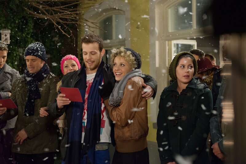 • Wie jedes Jahr finden sich auch Henning (Benjamin Kiss), Ute (Isabell Hertel, M.) und Irene (Petra Blossey) zum traditionellen Weihnachtssingen im Innenhof ein.