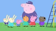 Peppa und Schorsch spielen zusammen auf dem Spielplatz. Opa Wutz ist auch dabei und spielt fleißig mit. Doch schon bald tanzen ihm alle Kinder auf der Nase rum.
