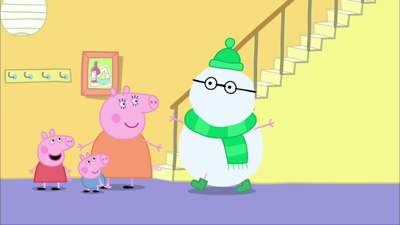 Peppa macht zusammen mit ihrer Familie einen Ausflug ans Meer. Doch in der Nacht hat es geschneit, sodass am Strand nun jede Menge Schnee liegt. Aber davon lassen sie sich nicht unterkriegen! Dann bauen sie anstelle einer Sandburg halt einen tollen Schneemann zusammen.