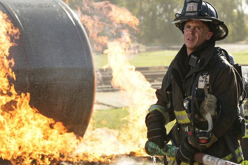 • Ein Kesselwagen mit Flüssigpropan steht in Flammen und muss gekühlt werden. Cruz (Joe Minoso) steht mit dem Löschschlauch bereit!