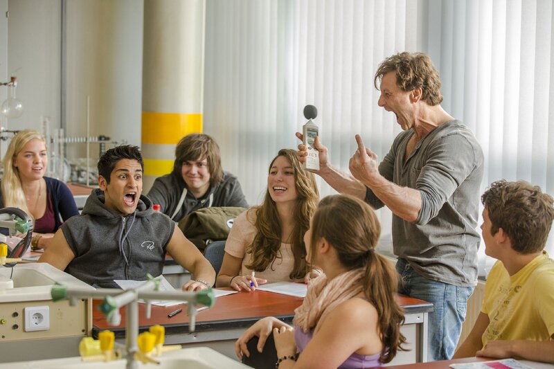 • Stefan Vollmer (Hendrik Duryn) führt der Klasse anschaulich seinen Schallpegelmesser vor.