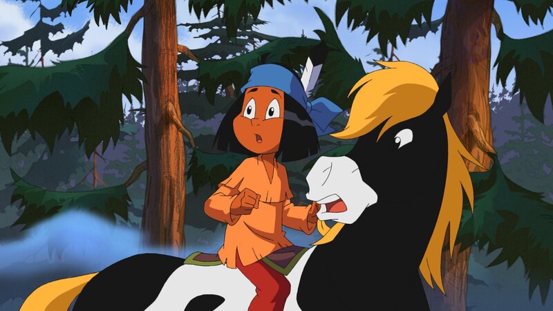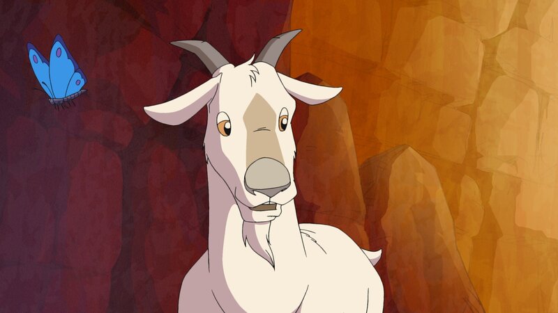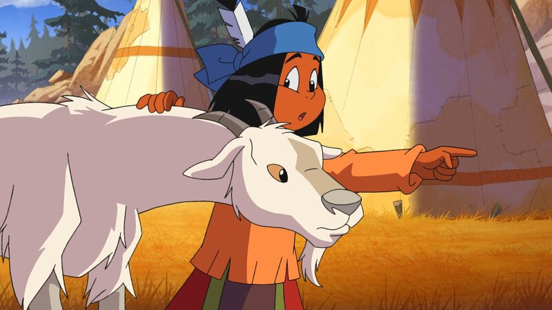 Yakari will die junge Ziege davon zu überzeugen, dass sie in ihrer Herde besseren Schutz findet als allein unterwegs zu sein.