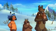 Yakari darf seinen Vater Kühner Blick und einige andere Jäger in die Berge begleiten, um dort nach den "schwarzen Steinen" zu suchen. Aus dem Vulkangestein bauen sie sich Werkzeuge und Pfeilspitzen. Als die Gruppe ihr Lager aufschlägt, wird Yakari gebeten, Feuerholz zu suchen. Dabei trifft er auf einen hungrigen Bären und wird gerade noch von einem großen Wapiti-Hirsch gerettet. Yakari packt dessen Geweih, schwingt sich auf den Rücken und reitet davon. Schnell gelingt es den beiden, den hungrigen Bären abzuschütteln, doch dann geraten sie in ein Unwetter und Yakari findet nicht mehr ins Lager zurück. Dort machen sich Kleiner Donner und Kühner Blick bereits Sorgen.