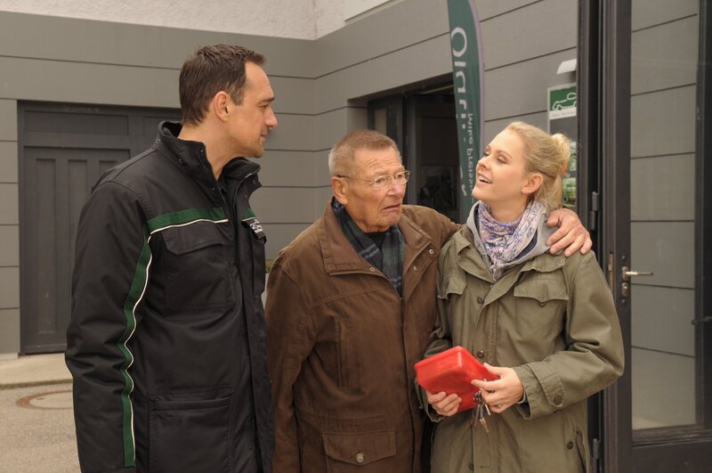 Yvi ist fest entschlossen, für ihr Vorhaben zu kämpfen. Von links: Mike (Harry Blank), Alois (Erich Hallhuber) und Yvonne Preissinger (Alexa Eilers).