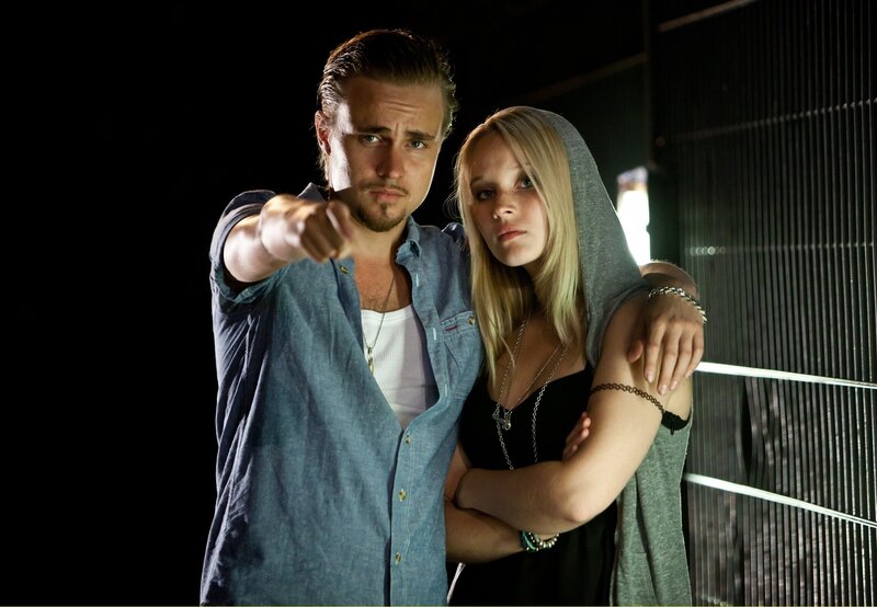 Die Rap-Sängerin Janine (Sonja Gerhardt, r.) kann nicht glauben, dass Nico (Constantin von Jascheroff, l.) Dennis verletzt haben soll.