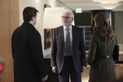 Ein Mann, der Castle (Nathan Fillion, M.) kein Unbekannter ist, stellt sich ihnen als Anderson Cross (James Brolin, r.) vor. Auch Kate (Stana Katic, l.) ist sich sicher, dem Mann schon einmal begegnet zu sein, was der jedoch abstreitet ...